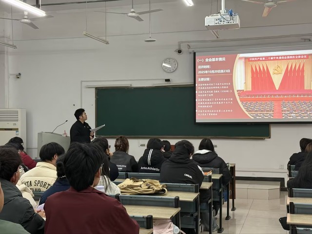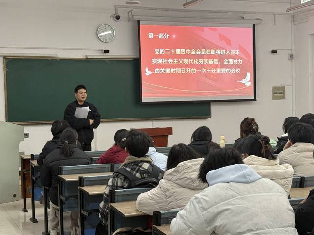 12月5日中午12时30分,在合肥大学第35栋107教室内,青年马克思主义者培养班(简称“青马班”)专题课程在此准时开讲。课程围绕“学习贯彻党的二十届四中全会精神”这一主题展开,主讲人为学院团委负责人杨林。