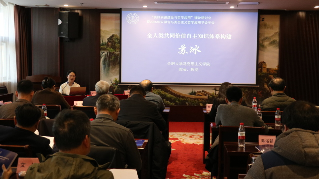 11月28日至29日,“美好安徽建设与哲学应用”理论研讨会暨2025年安徽省马克思主义哲学应用学会年会在蚌埠医科大学召开。本次会议旨在汇聚哲学智慧,服务美好安徽建设,吸引了全省20多所高校、党校、科研院所的百余位学者。与会专家围绕马克思主义哲学应用与安徽发展实践展开深度对话,为现代化美好安徽建设贡献理论力量。我院苏冰教授应邀出席,并在会上作了题为《全人类共同价值自主知识体系构建》的主旨发言。
