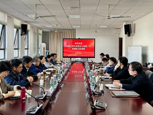 为进一步加强马克思主义理论学科建设,学习思政课改革创新的先进经验,推动学院高质量发展,2025年11月26日,学院党委书记鲁先瑾、院长苏冰、副院长詹玉华、副书记王飞等一行8人赴南京航天航空大学马克思主义学院进行学习调研。南京航空航天大学马克思主义学院党委书记何畏、院长王智和部分领导班子成员及教师代表等参加调研交流。