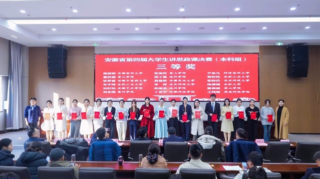 12月27日,由中共安徽省委教育工委主办,教育部高校思想政治工作队伍培训研修中心(安徽师范大学)、安徽师范大学马克思主义学院承办的安徽省第四届大学生讲思政课决赛在安徽芜湖圆满落幕。经过激烈角逐,我校2支参赛队伍成功斩获二等奖、三等奖各1项,充分彰显了我校思政课教学改革成效。
