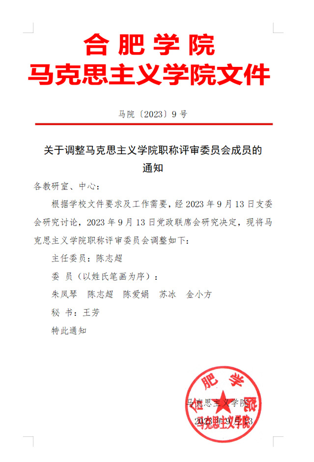关于调整马克思主义学院职称评审委员会成员的通知