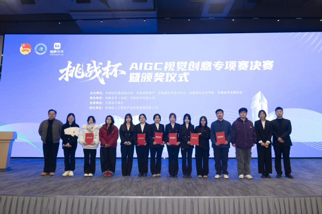 近日,第十一届“挑战杯”安徽省大学生课外学术科技作品竞赛“智创未来”AIGC视觉模型应用创新专项赛落下帷幕。本次大赛共有来自全省的438支队伍参加,我校获得AI平面创意制作赛道一等奖1项、二等奖3项、三等奖2项,AI短视频创意制作赛道二等奖2项、三等奖1项。