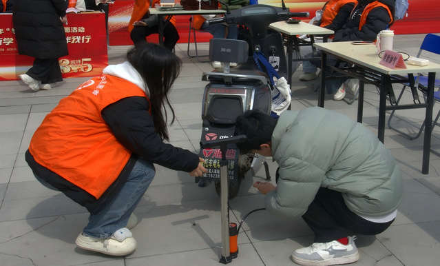现场便民服务贴心实用,涵盖清洗眼镜、清洁手机电脑、衣物缝补、非机动车轮胎加气等项目;校内电信营业部同步提供免费打印服务,切实解决师生日常小难题,以实际行动诠释“为人民服务”。