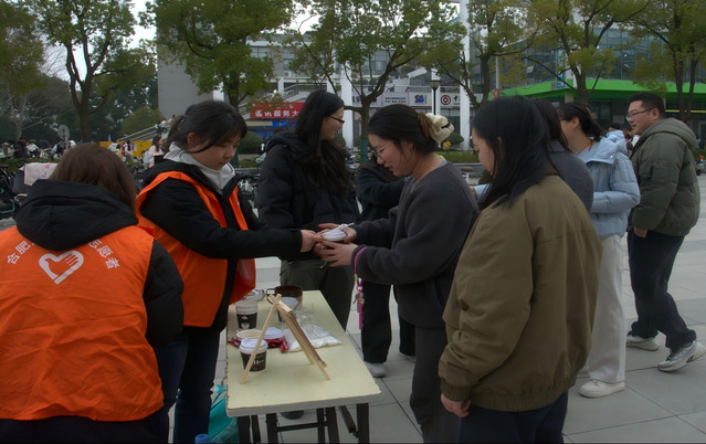 志愿者现场制作并提供免费咖啡,用一杯热饮为往来师生送上温暖,在细微之处传递善意与关怀。