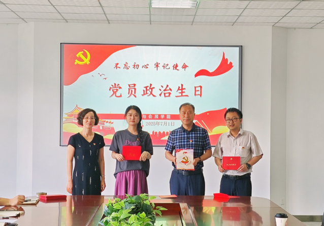 为庆祝中国共产党成立104周年,2025年7月1日上午,旅游与会展学院党委在学院会议室开展“过政治生日,忆誓言初心”主题党日活动,通过重温入党誓词、颁发纪念贺卡,激励党员牢记初心使命,强化师生党员身份意识与责任担当。