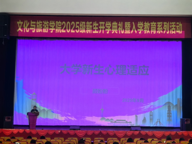 9月11日上午,合肥大学文化与旅游学院在一期致用礼堂成功举办2025级新生心理健康教育专题讲座。本次活动特邀校心理健康教育与咨询中心顾盼盼老师担任主讲,学院学工办副主任董敏主持,2025级全体新生参加。