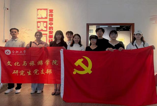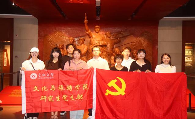 为纪念中国人民抗日战争暨世界反法西斯战争胜利80周年,深化党史学习教育,9月26日下午,在研究生党支部书记许婧老师与新闻与传播硕士点负责人郭静老师的共同带领下,文化与旅游学院研究生党支部全体党员赴安徽省博物院,开展“回望烽火岁月,牢记初心使命”主题党日活动。