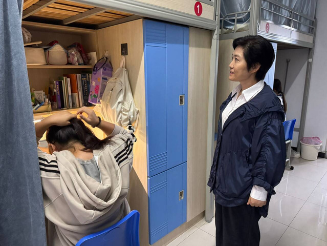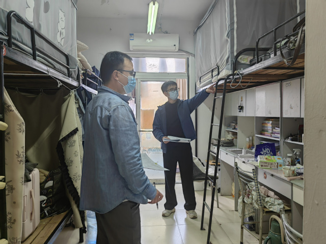 走访过程中,张爱萍副书记、张体云副院长与各辅导员细致查看了学生宿舍的卫生状况、用电安全、消防设施配备及是否存在违规使用大功率电器等情况。院领导们与同学们进行了亲切交流,详细询问了大家的学习、生活状况,并重点围绕秋冬季高发的消防安全、用电安全、交通安全、财产安全及传染病预防等问题进行了耐心细致的宣讲与提醒。张爱萍副书记强调,安全无小事,责任重于山,每一位同学都应时刻绷紧安全弦,自觉遵守学校规章制度,养成良好的生活习惯,共同维护宿舍这个“家”的安全与整洁。张体云副院长则从管理与服务角度出发,要求全体辅导员密切关注学生动态,及时排查并消除各类安全隐患,确保安全教育工作落到实处、取得实效。