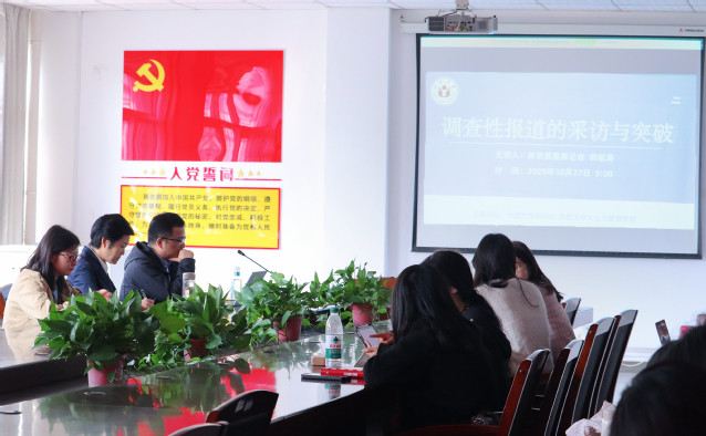 10月27日上午,合肥大学文化与旅游学院在一期5号楼202会议室举行“善思讲坛”中青年学术讲座。本次讲座特邀新京报首席记者韩福涛担任主讲嘉宾,题为“调查性报道的采访与突破”。讲座由文化与旅游学院教授、副院长张体云主持,新闻传播学科相关师生70余人参加。