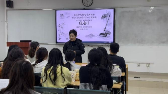 学院领导张体云副院长,专业负责人陈红燕副教授,专业教师洪婧副教授、钱隆博士,以及全体国际中文教育专业硕士研究生齐聚一堂,围绕课堂教学设计与主题演讲展开深入交流,共同开启新学期的学术征程。