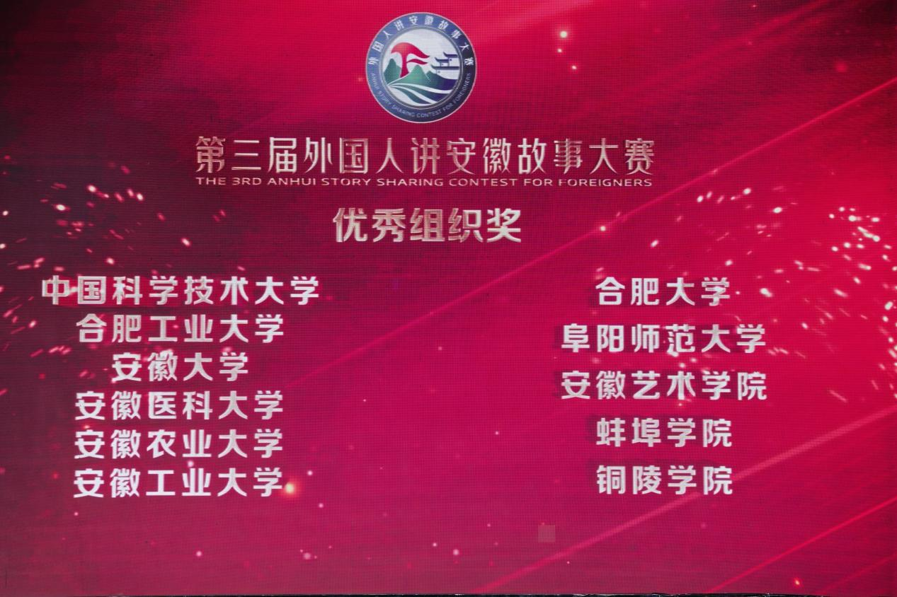 近日,第三届外国人讲安徽故事大赛决赛在安徽广播电视台演播厅圆满落幕。由我院国际中文教育专硕点师生、新闻与传播专硕点研究生与国际教育学院选送的留学生共同组建的参赛团队表现优异,一举夺得汉语组二等奖、新媒体国际传播奖及优秀组织奖,连同复赛阶段获得的优秀短视频奖,实现了该赛事奖项的“全满贯”,充分展现了我院坚定落实我校“地方性、应用型、国际化”办学定位的育人成效。