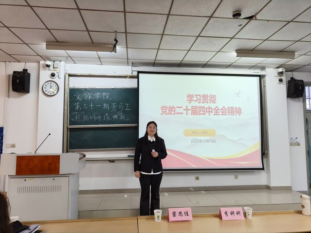 本次课程由文化与旅游学院党委副书记张爱萍主讲,团委负责老师窦思佳主持。全体学员准时到达现场,以饱满的热情迎接此次培训。