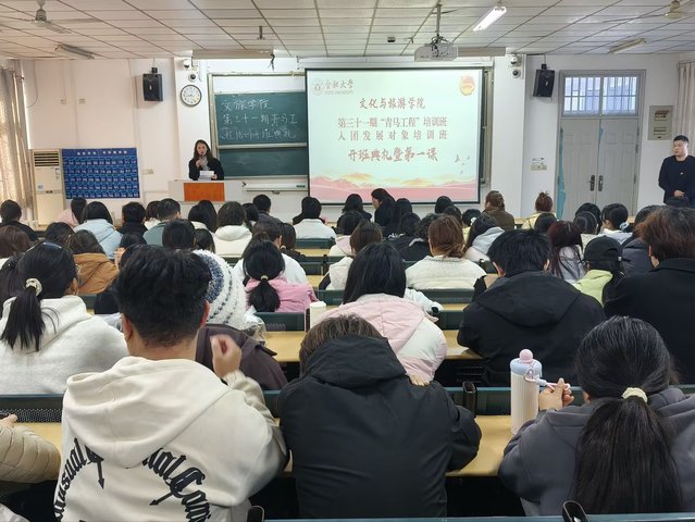 11月19日中午12:30,合肥大学文化与旅游学院第三十一期青马工程培训班第一讲在一区善思楼C座101教室正式开课。