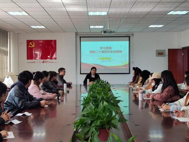 为深入学习贯彻党的二十届四中全会精神,引导学生党员坚定理想信念、明晰使命担当,11月20日,文化与旅游学院党委副书记张爱萍以“学习贯彻党的二十届四中全会精神”为题讲授专题党课。学生党支部书记以及学院全体学生党员参加学习。