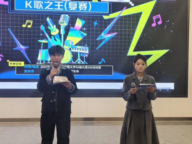 现场来自各学院的30名选手被分为15组,每组两名依次登台献唱。选手们选曲风格多样,赢得台下观众阵阵掌声与欢呼,充分展现了合大学子的青春风采与艺术才华。