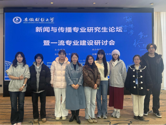 11月22日,由安徽财经大学主办的“新闻与传播专业研究生论坛暨一流专业建设研讨会”在蚌埠举行,来自省内外专家学者、高校教师及研究生共118人参加。合肥大学文化与旅游学院新闻与传播专业硕士学位点负责人郭静老师、网络与新媒体本科专业负责人王书川老师及7名新闻与传播专业硕士研究生受邀参会。