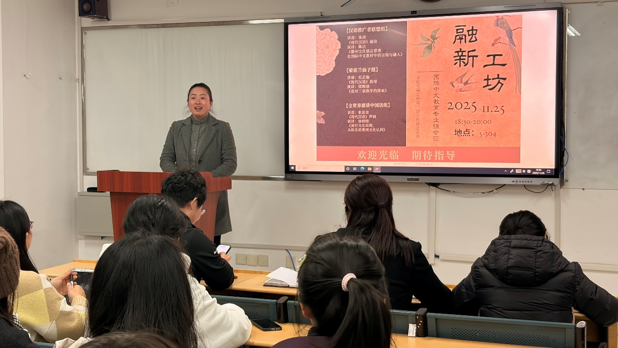 作为国际中文教育专业硕士点育人机制的重要载体,“融新工坊”系列组会持续聚焦教学能力与学术素养的双重提升。本次组会在前两次经验基础上,进一步优化内容设计,强化“教学相长、研以致用”的平台功能,有效助力学生在课堂教学实践与学术表达方面的成长。