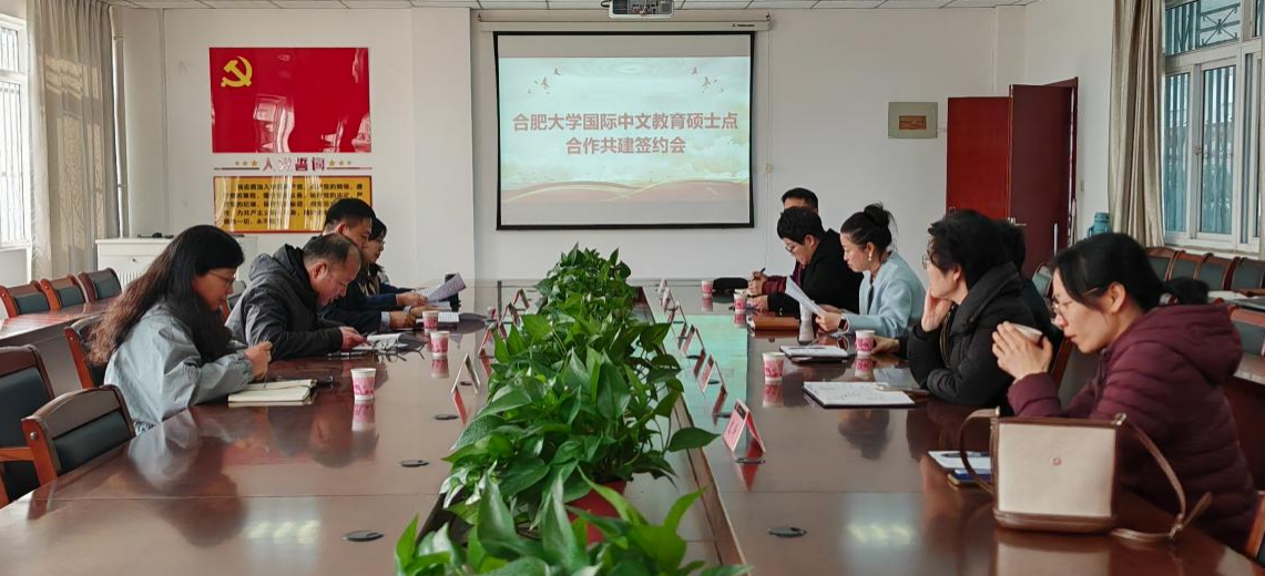 202512814:00,合肥大学国际中文教育专业硕士点合作共建签约会在学校一期5号楼会议室举行。文化与旅游学院、外国语学院与国际教育学院三方代表齐聚一堂,现场签署合作共建协议文化与旅游学院党委书记丁增武、院长查金萍、副院长张体云,国际教育学院院长王永军,外国语学院副院长曹昊、李洁国际中文教育硕士点负责人陈红燕以及相关教师一同出席了签约仪式。