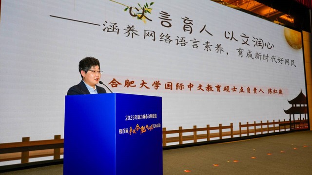 合肥大学文化与旅游学院学生所做的作品在此次评选中斩获1个二等奖、2个三等奖,合肥大学国际中文教育硕士点负责人、文旅学院副教授陈红燕在活动中带来主题分享,从专业视角为网络文明建设建言献策,23新闻学班的获奖学生们也出席了颁奖现场。