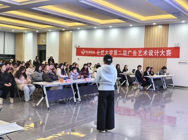 12月26日下午6:30,合肥大学第二届广告艺术设计大赛决赛在二期新大学生活动中心北楼206室成功举办。本次赛事由文化与旅游学院主办,中国联通校园卡提供赞助支持。决赛现场特邀校团委办公室主任李雯雯老师、中国联通合肥大学校区孙伟先生以及文化与旅游学院团委负责老师窦思佳担任评委,本次比赛由巫绍阳、项奕同学主持。