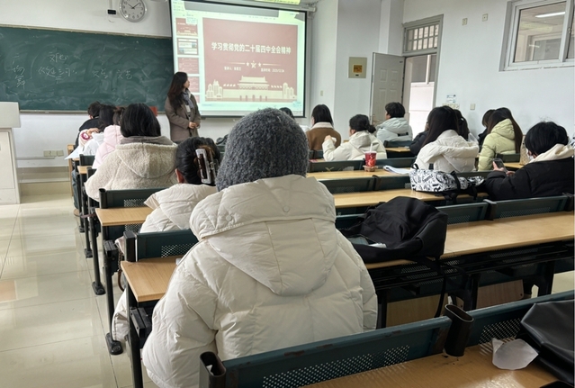 2025年12月24日,文化与旅游学院党的二十届四中全会精神宣讲活动走进2024级新闻与传播专业硕士研究生班,在5栋306教室举办题为“深学全会精神 勇担传媒使命”的主题宣讲。学生党员吴若兰以党的二十届四中全会精神宣讲团成员身份走进支部、走进班级,与同学们共学全会精神、共话青春使命。