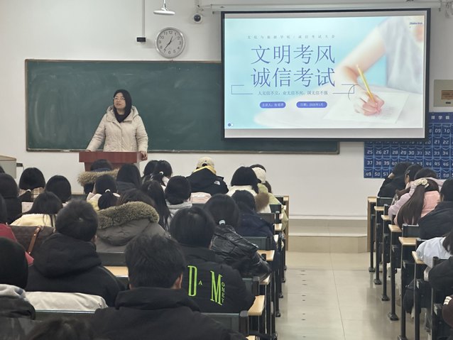 为切实筑牢期末安全防线,严肃考风考纪,营造安全、诚信、有序的校园环境,1 月 6 日,文化与旅游学院于一期 5 栋 105 教室召开期末安全与考风考纪专题教育会。学院党委副书记张爱萍出席会议并作专题讲话,各班学生代表参会。