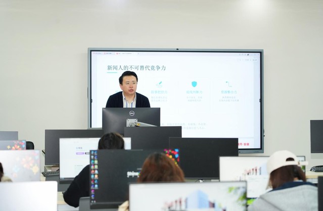 3月26日晚,界面新闻安徽频道总经理胡泓炜应邀来院讲学,为微专业同学做了一场题为“AI驱动下的品牌创意与策划”的专题讲座。讲座由魏修治主持。