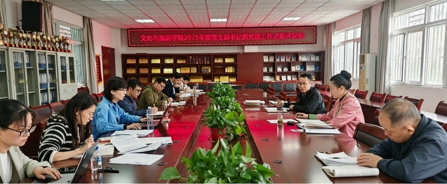 2026年4月7日下午,文化与旅游学院党委召开2025年度党支部书记抓党建工作述职评议会。会议由学院党委书记丁增武主持,考核评议组成员及各党支部书记参会。