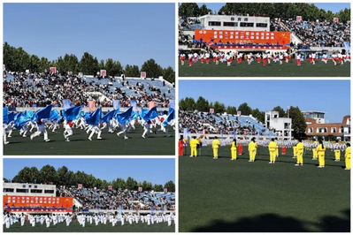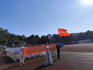 23 日上午,运动会开幕式在合肥大学二期操场隆重举行。伴随着激昂的音乐,外国语学院方阵队有序登场,同学们身着统一服装,迈着整齐有力的步伐向主席台行进,口中高呼 “放眼世界 砥砺品行 追求卓越” 的口号,声音铿锵有力、此起彼伏,充分展现了外院学子自信昂扬的精神状态。方阵队过后,外国语学院 180 名学子参与的团体操表演更将现场气氛推向顶点,《美丽中国》的悠扬旋律响起,同学们以灵动舞姿绽放青春风采。整齐的队列变换是严谨治学的缩影,舒展的肢体语言是开放包容的写照,表演开头化作奔跑的箭头,最后以中国地图造型收尾,每一个动作都传递着 “语通世界,心向未来” 的信念,生动诠释了外院学子的创造力与凝聚力。