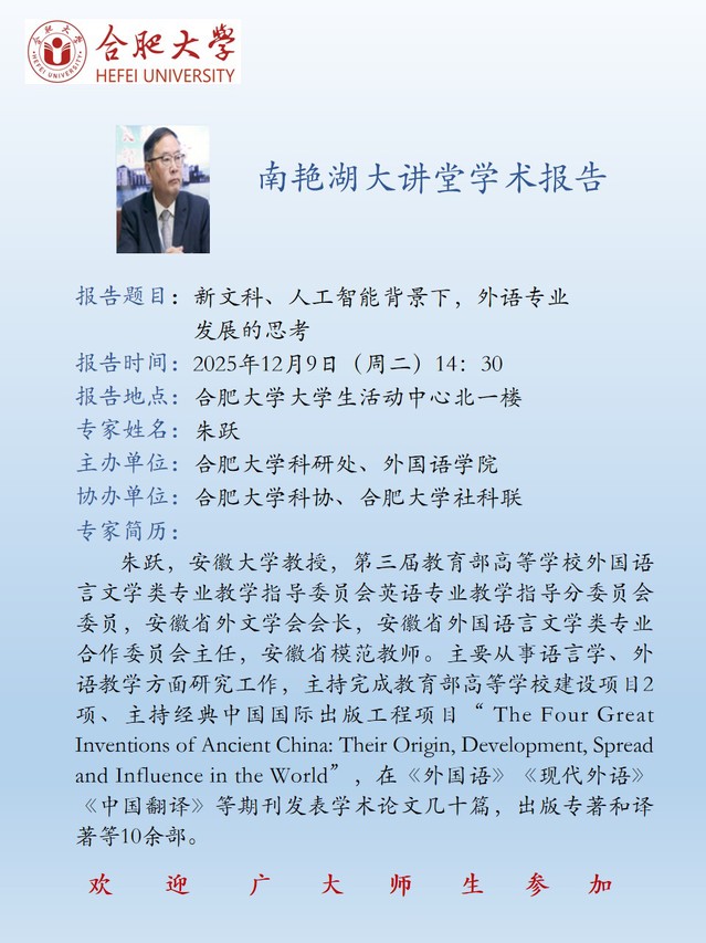 南艳湖大讲堂学术报告:新文科、人工智能背景下外语专业发展的思考