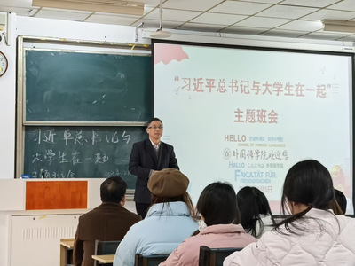 12月5日中午,外国语学院于一期五栋101教室召开“习近平总书记与大学生在一起”主题班会。外国语学院党委书记罗会必、组织员李菲菲、辅导员李发俊、张正华、王雨濛、全体在校学生干部参会。