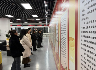 活动现场,师生们有序步入展览展区,在一幅幅展板前驻足学习、认真研读。展览集中呈现了党的十八大以来,习近平总书记给全国多所高校师生的珍贵回信内容,以及他与青年学生亲切互动、真挚往来的动人记录。每一封信函、每一段寄语、每一个细节,都凝聚着习近平总书记对青年成长成才的深切关怀,寄托着对新时代青年挺膺担当、矢志奋斗的殷切期望。