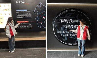 在三国合肥历史文化馆内,志愿服务持续升温。志愿者们结合前期培训内容及自身专业优势,用通俗易懂的语言向游客讲述“张辽威震逍遥津”的经典战役,解读三国历史典故与花灯寓意。面对游客的提问,志愿者们耐心细致解答,全力保障游客参观体验。在“威震・逍遥津”展区,志愿者们借助全息影像、手绘动画等展示形式,带领游客重温古战场风云。不少游客表示,通过大学生志愿者的讲解,抽象的历史变得鲜活可感,真切体会到了这场以少胜多战役的震撼与传奇。