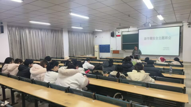 新学期伊始,为全面筑牢校园安全防线,强化学生安全意识与自我保护能力,营造平安、和谐、有序的校园环境,外国语学院党委副书记夏丹青以及学工老师,深入各班级开展“新学期安全主题班会”,把安全教育送到每一间教室、每一位同学身边。