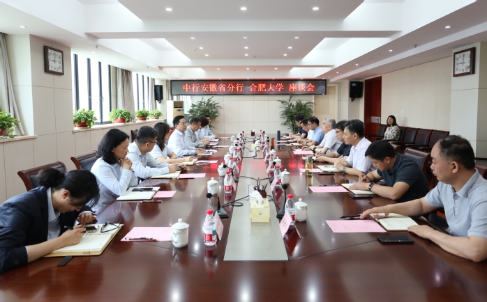 6月13日,中国银行安徽省分行党委书记、行长王才先一行来校交流,我校在行政楼九楼西会议室召开座谈会,党委书记邬平川出席并主持会议。