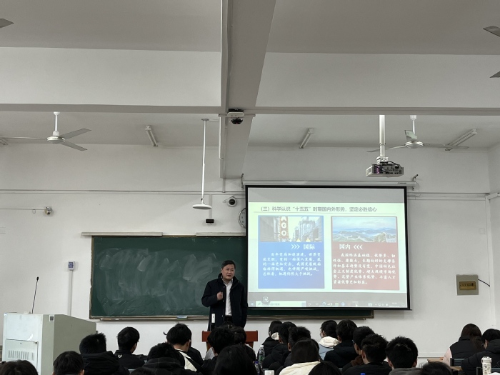 2025年12月15日,党委常委、副校长王晓峰为2024级计算机专业学生授课,他紧扣党的二十届四中全会精神的核心要义,结合学校发展实际与青年成长需求,阐释五年规划彰显的制度优势,要求同学们坚持学思用贯通、知信行统一,将学习全会精神与践行学校发展目标、实现个人成长规划有机融合。