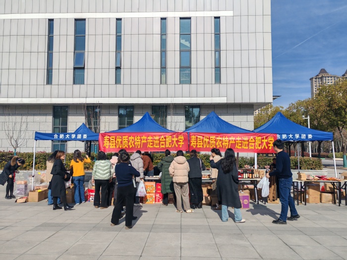 为深入贯彻落实《寿县人民政府·合肥大学校地战略合作框架协议》,推动合作内容落地,深化校地融合,助力乡村振兴,1月13日至14日,由地方服务合作处、乡村振兴办公室牵头组织的“寿县农副产品进校展销”活动在大学生活动中心前广场举办。