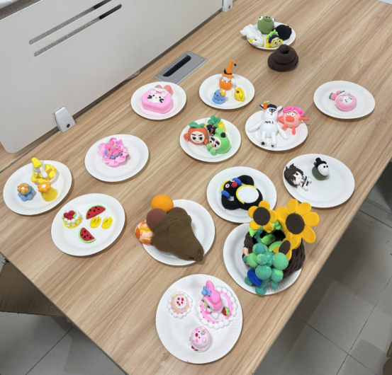 制作完成后,同学们围坐一圈,展示自己的作品,分享参与本次活动的感受。大家纷纷表示,手工粘土的过程让自己释放了压力,在专注捏塑中静心独处,感觉非常充实。充满巧思的作品不仅展现了同学们的创造力,更承载着大家对生活的热爱与期待。分享结束后,同学们自觉整理工具,封装粘土袋,并一起打扫活动现场。共同的劳动让整个空间的温暖得以延续,也让每个人在协作中感受到集体的融洽。