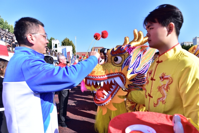 各体育俱乐部为全场师生带来了精彩绝伦的文艺表演,观众席掌声不断。《舞龙舞狮——龙飞九天,狮跃中华》以磅礴气势率先开场,《大众操——青春魅力》将轻快律动融入现代舞蹈,《跆拳道——跆拳有道》展现出力量之美,《团体操——美丽中国》以行云流水的表演为开幕式圆满收尾。每一幕表演都展现出学子们的多才多艺和与青春风采,为整场运动会注入了蓬勃活力和无限激情。