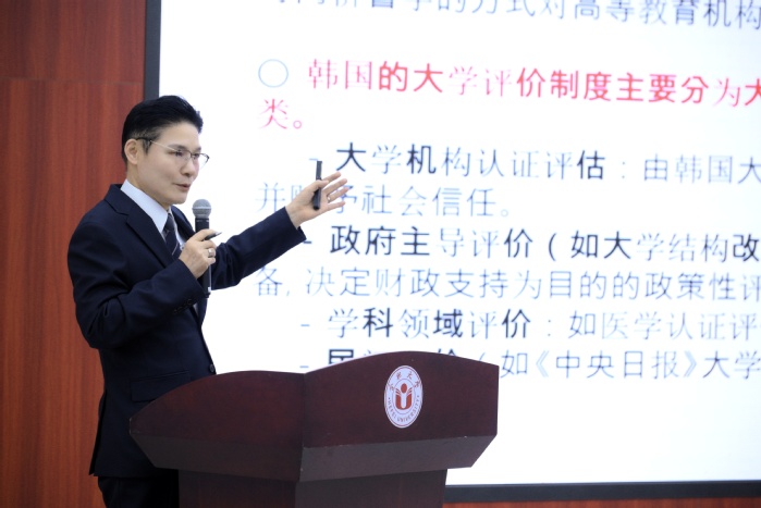 会上,具滋亿教授以“韩国大学评价政策与地方大学发展——以西京大学、极东大学为例”为题,系统介绍了韩国高等教育体制现状及政府评价体系,并分享了两校在课程重构、教学方法创新、教育质量认证等方面的实践经验。