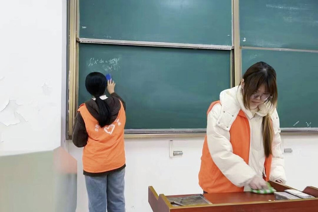 同时,“以清扫绘新景,用行动护校园”清扫活动采取“周末集中清理教室+日常维护校园道路”相结合的模式。周末时段,志愿者对教室进行全方位清洁,包括擦拭黑板、整理桌椅、清除卫生死角;日常学习生活中,他们亦活跃于校园道路、绿化带等公共区域,随手捡拾垃圾,以实际行动维护校园环境整洁。