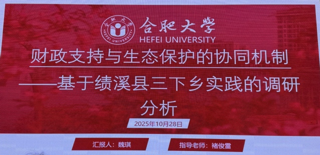 10月28日14:00 在大学生活动中心北楼206学生活动室举办的2025年暑期“三下乡” 社会实践团队汇报展示暨评选活动圆满落幕。我院选送的“合研星光”团队凭借出色的实践成果和精彩的现场汇报,以88.8分的优异成绩荣获“优秀实践团队”、褚俊雷荣获“优秀指导教师”称号。
