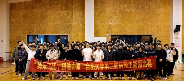 2025年12月23日下午,合肥大学体育馆中呐喊声、助威声交织回荡,由研究生院倾力打造的第二届研究生拔河比赛在同学们的期盼中顺利举行。作为校园文化建设的重要组成部分,本届比赛规模再度升级,共有17支队伍340名研究生选手齐聚赛场,以绳为媒,在寒冷的冬日上演了一场力与美的较量,为校园注入了满满的青春活力。