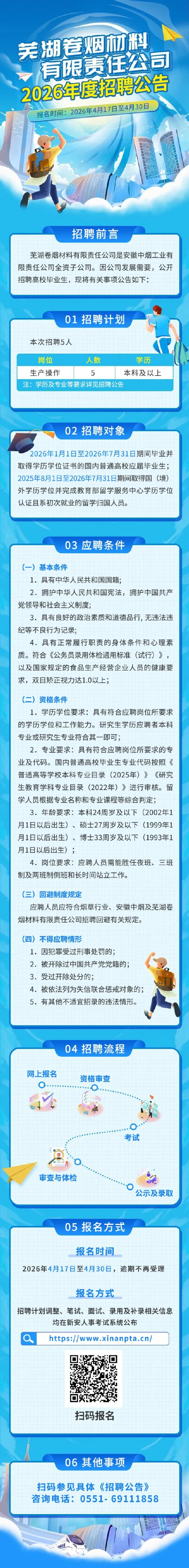 芜湖卷烟材料有限责任公司2026年度招聘计划表