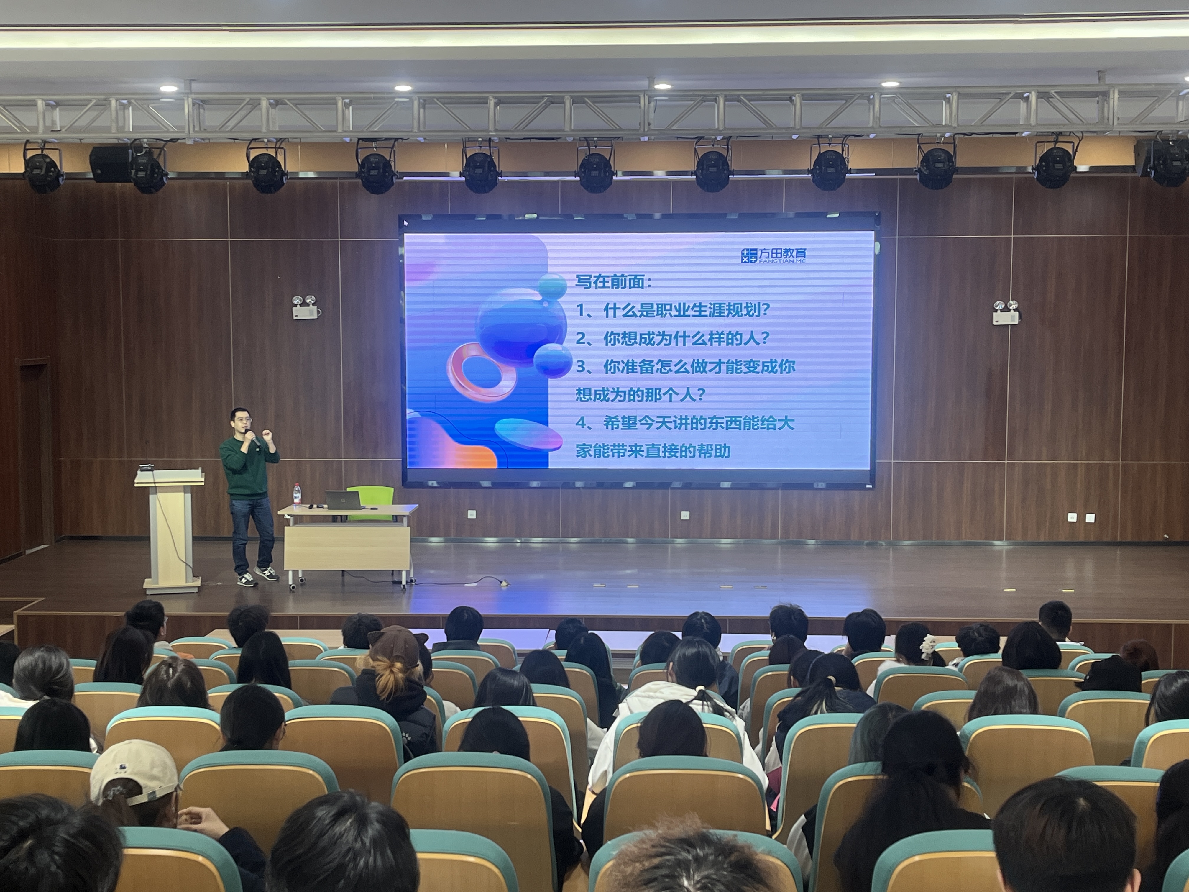 11 月 27 日下午,设计学院 “HR 进校园 —— 职业生涯规划讲座” 在 55 栋 205 报告厅顺利举办。本次活动特邀合肥方田教育人事经理陈洋洁先生主讲,为 学院2025 级大一新生带来了一场兼具理论深度与实践价值的职业启蒙课,帮助新生在入学初期明晰发展方向,搭建专业学习与职场发展的桥梁。