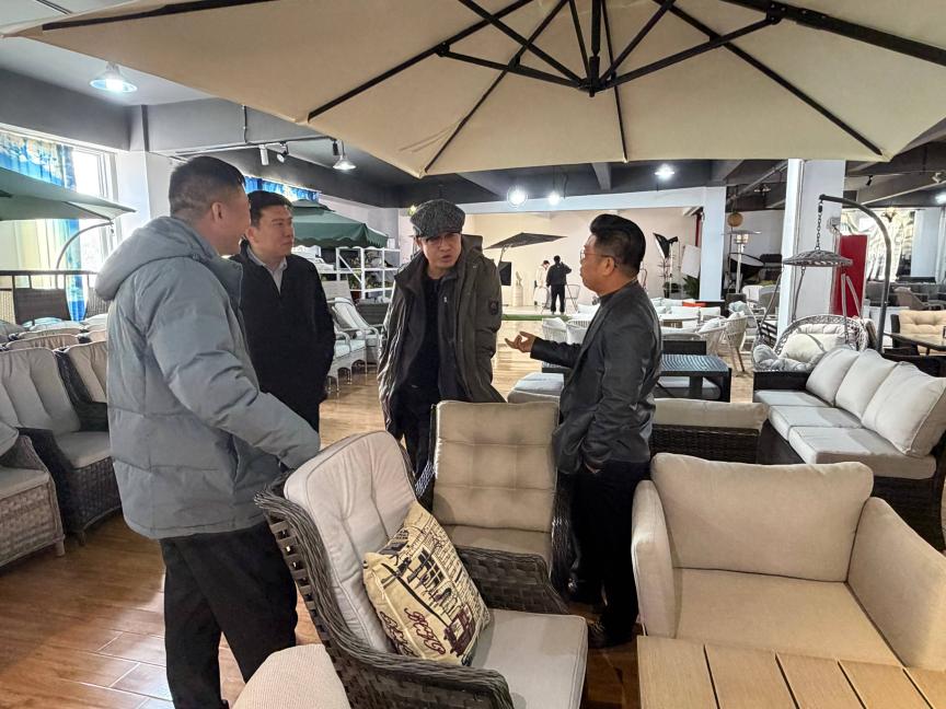 在摩达智能公司负责人及相关技术部门主管的陪同下,学院师生一行参观了企业产品展示中心。展厅内陈列了多种采用不同工艺与材质打造的沙发系列,以及运用新型环保材料研发的创新家居产品,全面展现了摩达智能在设计美学、功能集成、交互体验与可持续制造方面的综合实力。潘峰在参观过程中详细询问了多款家具的设计理念、用户研究基础、材料选用及生产工艺,并对企业将多元材质与先进工艺融入日常生活、提升人居品质的创新实践表示赞赏。