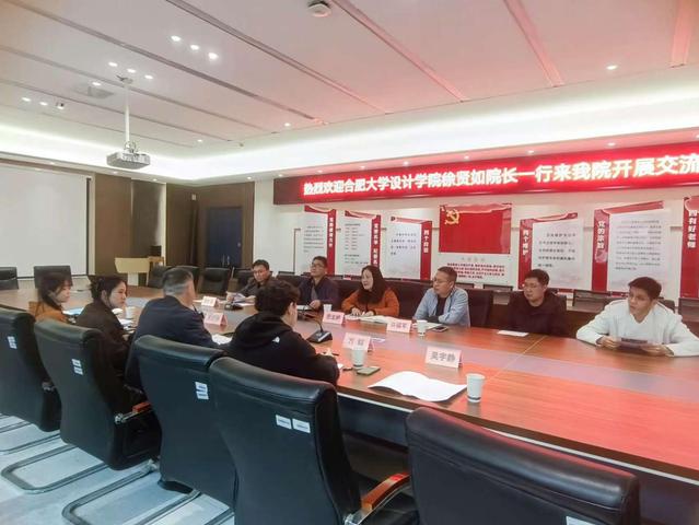 2026年4月3日,设计学院由教学院长徐贤如带队,组织教学办主任夏舒薇、实验室主任方韬、副主任李静秋及实验师吴宇静一行,前往淮南师范学院美术与设计学院开展交流调研。淮南师范学院美术与设计学院党委书记王怀顺、院长倪龙娇、副院长陈大利、教学办主任徐世超及实验室相关负责人予以热情接待。