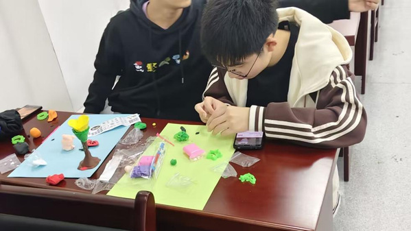 下午2点,活动正式开始。参与同学完成签到后,在工作人员的引导下领取创作材料并有序入座。大家自由组队,围绕“如果我是一棵植物”展开想象,借助黏土与画笔,将内心的“自我”投射为植物的形态与色彩,现场气氛专注而温馨。