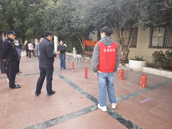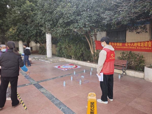活动现场,“沙包投掷”“趣味套圈”“趣味投壶”三大项目各具特色,洗衣液、抽纸、毛毯等实用奖品整齐陈列,吸引了社区众多老年朋友踊跃参与。大家精神矍铄、热情高涨,在游戏中切磋技巧、收获快乐,现场掌声、欢呼声此起彼伏。智建学院志愿者们分工明确、主动靠前,耐心为老人们讲解游戏规则、分发比赛道具,细致协助完成各项流程,用真诚的笑容和贴心的服务,成为活动中一道亮眼的青春风景线。