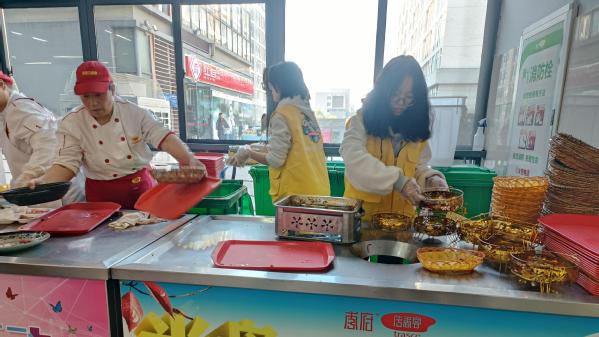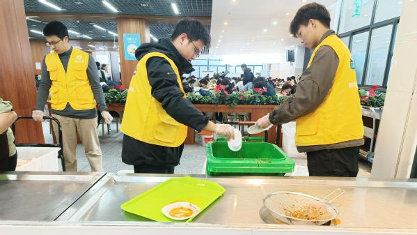 活动期间,志愿者们分工明确,务实高效。在食堂区域,志愿者们专注于后勤辅助工作,通过主动擦拭餐桌、协助回收餐盘与集中运送等实际行动,维护了用餐环境的整洁,有效缓解了食堂高峰时段的工作压力。